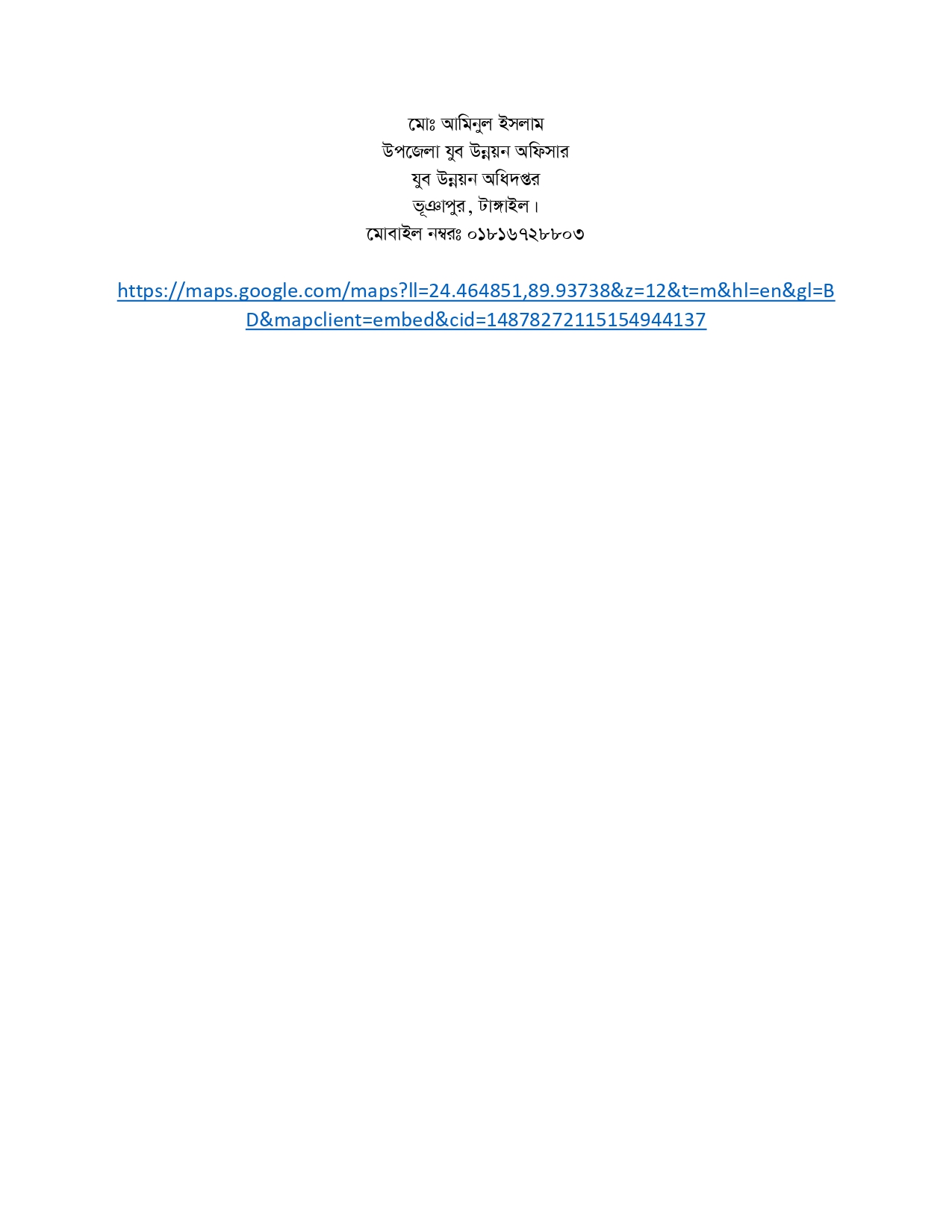 উপজেলা যুব উন্নয়ন কর্মকর্তা, ভূঞাপুর, টাঙ্গাইল।